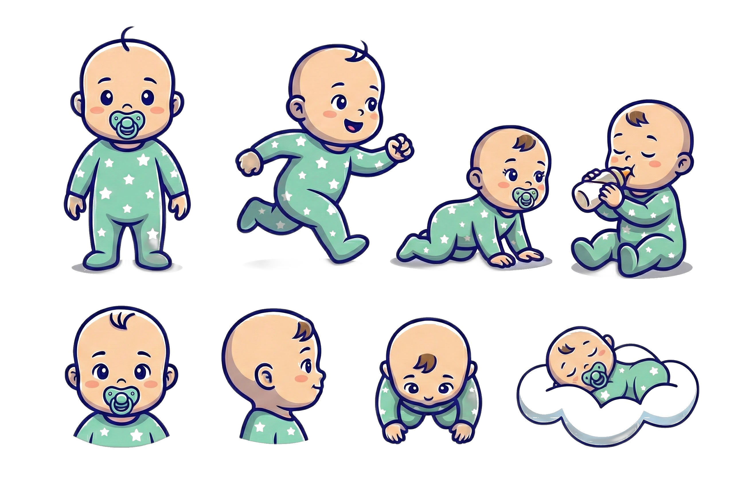Choose bottle, diaper, nursing, bath, weight or height.